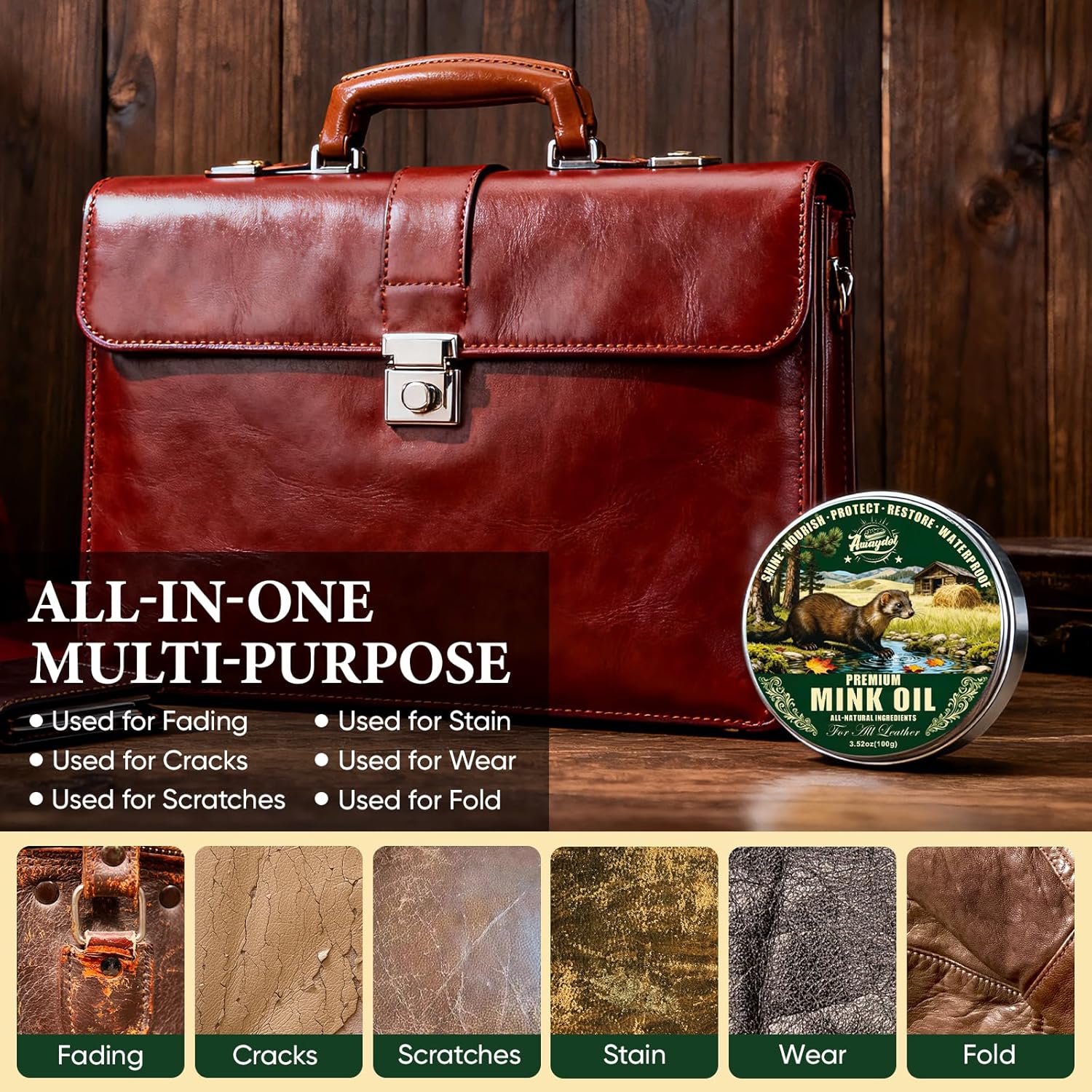 4-in-1 Mink Oil Leather Conditioner and Cleaner 3.52 oz – Premium Waterproof Formula for Leather Cowboy Boots,Shoes,Saddles & Bags with Horsehair Brush, Sponge & Microfiber Cloth