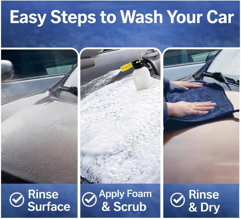 - Works with Foam Cannon & Bucket Wash – Designed for use with foam cannons, foam guns, pressure washers, or traditional bucket washing, suitable for beginners and professionals alike.