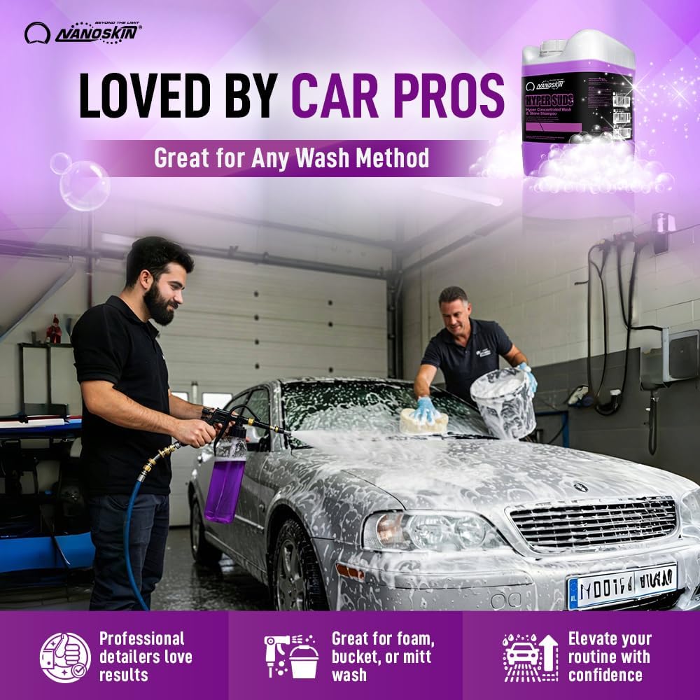 Nanoskin HYPER SUDS Foaming Car Wash Shampoo 1 Gallon – Ultra Concentrated: Works with Foam Cannon, Foam Gun, Bucket Wash, Pressure Washer | Ideal for Use in Mixing/Metering systems | 800:1 Dilution